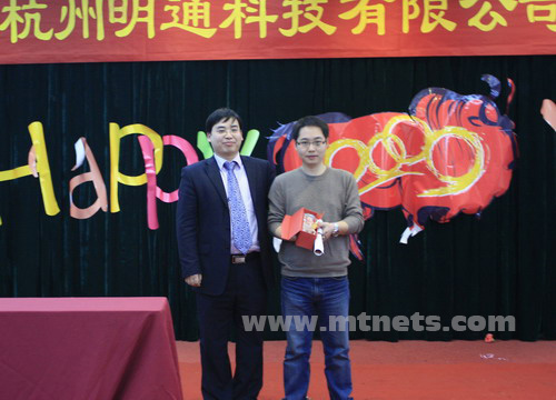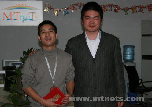 王神州获明通公司2008年度11月份模范奖,工控网主管蔡凌飞为其颁奖。