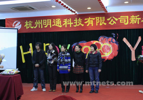2008年度明通公司全勤次数最多的5位员工马慧琳、贺晶、曹林、梅飞儿、谢莉莉获得年度全勤奖