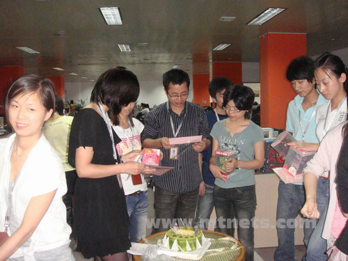 在生日歌的伴随下,6月生日的员工走到蛋糕桌前,满面笑容的接过公司精心准备的生日礼物,与同月出生的同事一起切开生日蛋糕,幸福分享。
