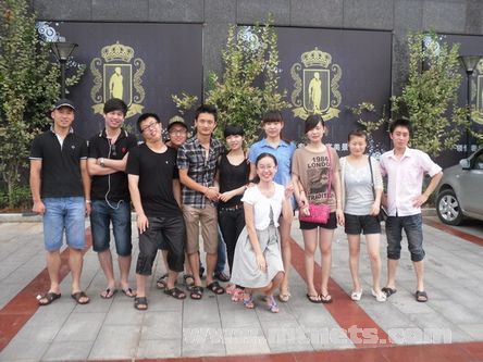 传说中的四星级酒店“印象熟溪”门口来张集体照,彭清和女友很恩爱,大宝还是那么搞怪