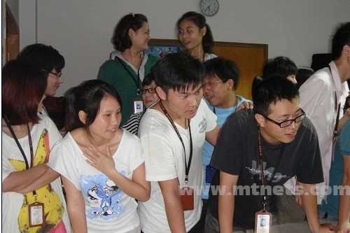 张国君套中了很多人都想要的精美红酒,众伙伴鼓掌中