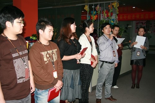 明通老员工,“资历哥”詹玉明给虎队PK胜出的同学颁发奖金