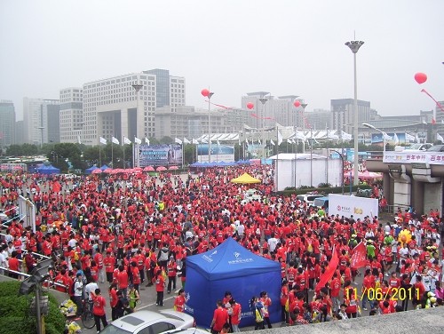 朱晓明:1、我迟到了几分钟,结果人山人海中找不到组织了,一个人孤零零的跑,一路上也没看到公司同事(不过别人看到我,只是不敢确认是不是我)当时以为自己肯定是公司最后一名,没想到居然还有好几个男生比我还慢。