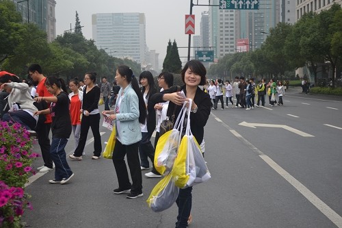背景资料:本届杭州国际马拉松是第25届,今年升级为世界级马拉松赛事,并采用了全新路线。一共有2.3万人报名参赛,创造了历届杭州马拉松参赛人数之最。其中参加全程、半程的竞赛人数从去年的2000人翻倍至4000人;近1.8万人参加短程马拉松(13公里)和小马拉松(6.8公里),这个数字甚至超过了去年杭马参赛的总人数。咱们明通的运动健将们,就是1.8万人中的一个哦