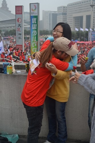 丹丹到终点了,跟好姐妹兴玉拥抱一个