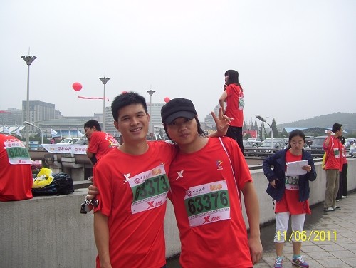 韩礼清:参加马拉松完全是一次偶然的机会。当时我没报名参加的,本来是为拉拉队去的,结果有事凯凯没去,多了一个名额,犹豫再三代替凯凯跑了。试想,一个人如果连续跑6.8公里都能坚持下来。还有什么困难不可以克服!于是我我抱试试的态度,最终也坚持下来了!挺锻炼自己的意志,促进身心健康。跑跑挺好的。能够有一次万人一起跑步,也是一件非常开心的事情。值得留念!下次有这样的活动还想继续参加!