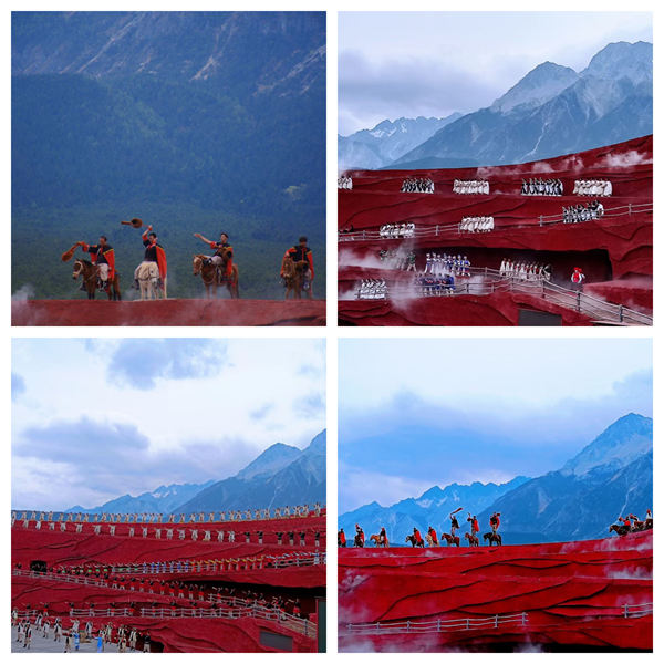 《印象丽江》是张艺谋导演的“印象系列”之一,虽然全程不太能听懂,但确实是一场灵魂与视觉的盛宴。全剧共分古道马帮、对酒雪山、天上人间、打跳组歌、鼓舞祭天和祈福仪式6个部分,演出以玉龙雪山为背景,搭建的红色建筑为舞台,融入民族文化风情,以当地农民做演员,在海拔3100米的玉龙雪山甘海子蓝月谷露天剧场,真马、真景、真情的表演,整个演出可谓是震撼人心!
