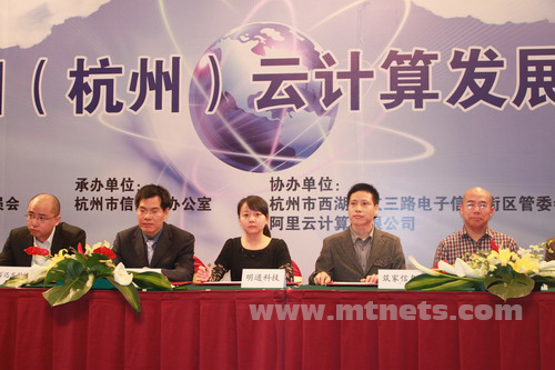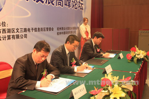 在本次高峰论坛上,西湖区人民政府与东华大学、浙江工商大学共同完成了“西湖云计算公共服务平台”的上线仪式,“西湖云”平台的上线,也标志着杭州拥有了全国第一家利用云计算技术服务于电子商务产业的公共服务平台。