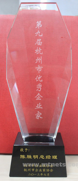第九届杭州市优秀企业家评选活动在市经信委的指导下,由市企联、市企协组织圆满完成,本次评选活动经推荐、初审、考评、公示、审定等环节,对2012年全市坚守在各行业领域努力奋斗,为杭州经济社会发展做出了贡献的卓越企业家进行综合选评。杭州市经信委市场处处长蔡德全宣读了关于表彰第九届杭州市优秀企业家的决定,市经信委领导为优秀企业家颁奖。