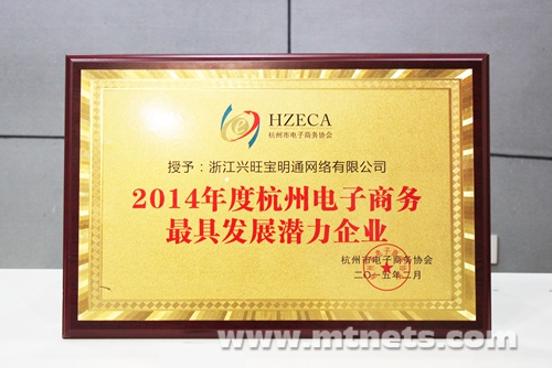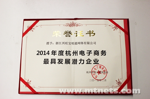 浙江BetWay体育通荣获“2014年度杭州电子商务最具发展潜力企业”