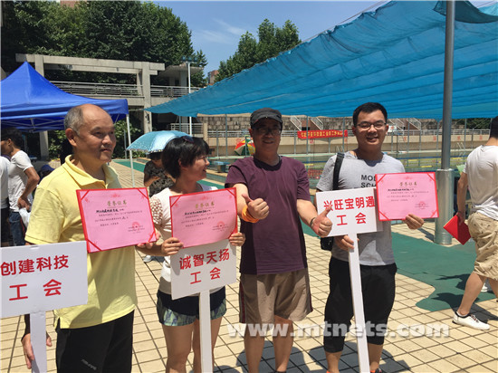从往年的参赛情况来看,园区选手高手如云,有的选手非常标准的泳姿,甚至接受过专业的训练,而我们的选手成绩并不突出,但不妨碍我们的热情,抱着重在参与的心态,兴旺宝选手报名参加了男子100米,女子50米,男女混合接力的所有项目。早上9点,比赛哨响,一组组运动员跃入水中你追我赶,岸边的后勤啦啦队为选手们加油鼓励。