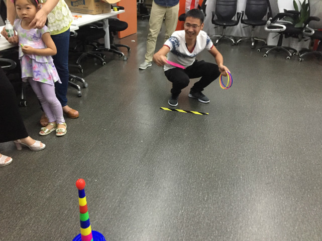 第二波活动是针对公司大龄儿童们的,室内趣味运动会,简单又好玩。设置了小李飞镖、趣味高尔夫、趣味套圈、夹弹珠四个项目,每个项目都设置了参与奖和达标奖,棒棒糖和AD钙奶,满满的儿童味道。活动以游园的方式进行,分组有序的参与,乐在其中,每个单项都限时一分钟,小伙伴们要在有限的时间内取得最好的成绩可不那么轻松的哦。活动过程中出频频出现搞笑欢乐场景。单项和总成绩前三名更是提供了超市卡,移动电源等丰厚奖励,大家玩的开心,不少人也收获了奖品。