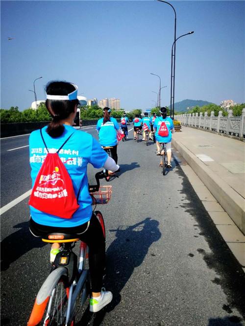 出发了,一共有七个打卡,星耀城、吉利、鑫都汇、白马湖、网易、阿里和中南。七点四十分出发还好,天气还不算热,大家争先恐后出门