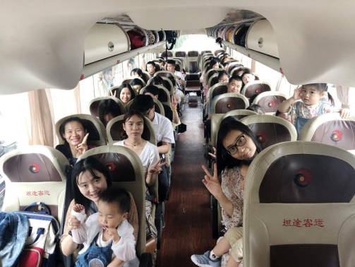6月22日清晨,浩浩荡荡的百人大团坐上汽车,伴随着孩子们的欢声笑语一路前行。