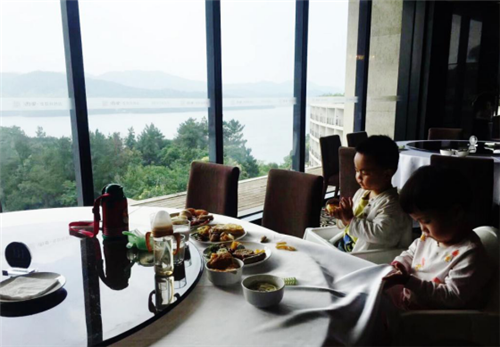 美食+美景,小朋友已经乖乖坐在窗边享用早餐了