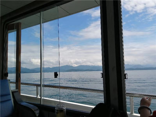 乘着游船前往月光岛,窗外是水天一色的风景,大家在陶醉中释放自我,畅聊趣事,整个氛围都无比的轻松。