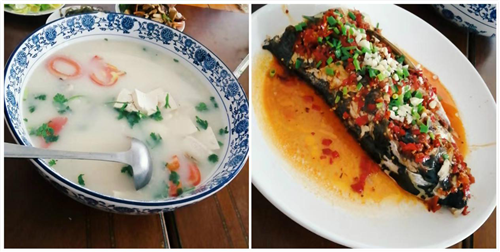 中餐时间,大家品尝了千岛湖当地的美食之一——千岛湖鱼头,其鱼头个大肥美,新鲜黑亮,无土腥味。据导游介绍,这些鱼是经千岛湖独有的“巨网捕鱼”打捞,通过洗、烫、炒、煮、炖等多道工序做成,面对这样鲜美的食物,让人不得不使出洪荒之力,吃完喝光!