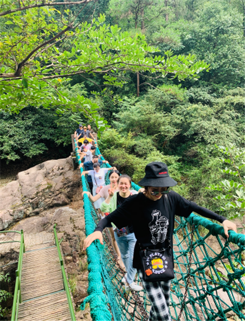 走铁索桥,依次吴晓云,徐晴晴,老马(电竞比赛中单选手),本次旅游忙前忙后安排的邵卫星。怂的人都走下面的路桥,比如我..