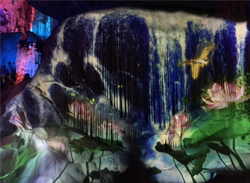 结合地貌的灯光景观秀,注意瀑布,那地貌真的像水流