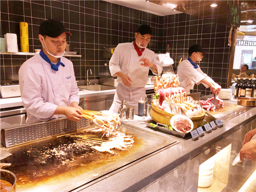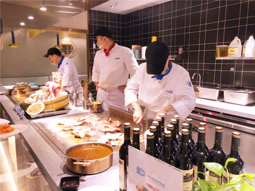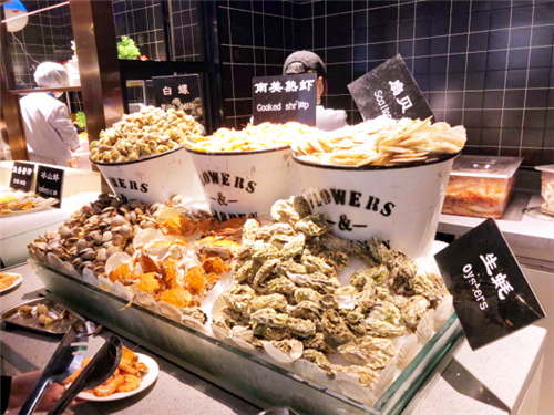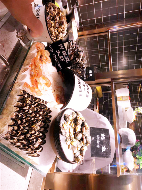 鲜嫩的阿根廷大虾、滋补的鲍鱼、鲜艳的蟹、各种扇贝生蚝小龙虾、刚切的三文鱼、冰山蚌以及专业厨师操刀烹饪的鱿鱼和牛排都在向我们招手,仿佛在说:我们已经洗干净躺好啦,快来吃我呀!