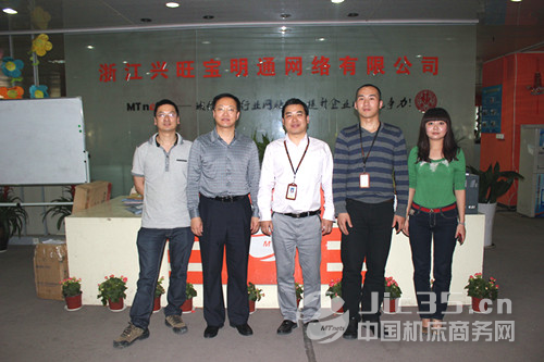 合影人物:BetWay体育通副总经理吴立灶、滕州市经信局局长韩业河、BetWay体育通总经理陈胜明、中国机床商务网站长蒋鑫、BetWay体育通对外关系主管何立娜