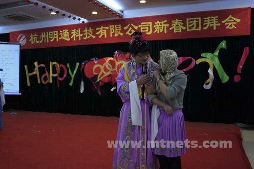 一曲《我的未来不是梦》拉开了新春团拜会演出的序幕,精彩的歌声、动感的舞步,摩登的走秀,悠扬的笛子,自编自演的小品,互动游戏,让年会的联欢气氛逐步升温。由矿冶、包装等网站推出的《明通联播》以新闻联播的形式将社会热闻、明通事件、员工生活串联起来,更制作了搞怪幽默视频资料,整个表演过程让人爆笑不止。食品机械、农机等联合表演的《骆公子与汪如花》极具创意的反串表演好评连连,获得了当晚的最佳表演奖。《西游后传》融合了小品、舞蹈、歌曲等多种形式,中外名段间插其中营造了强烈的娱乐氛围。客服献上的走秀,时尚的风范无疑让所有人眼前一亮。大行政的街舞组合《舞动青春》,多层次的变换和动感的身姿一展青春活力。技术部的大合唱《相亲相爱一家人》唱出了明通大家庭共同的声音。绚丽多彩的节目,释放着多才多艺的必威中文官网首页无限激情。扣人心弦的抽奖活动将整个年会多次推向沸腾。所有明通的兄弟姐妹在热烈的欢呼声中共同度过了难忘的快乐时光。面对2009,我们将用激情开启无限美好的未来!